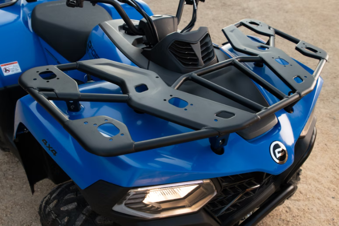 Diseñado para hacer frente a las exigencias de los agricultores y el trabajo rural, el CFORCE 450 ATV cuenta con un potente motor de 400 cc y 30 hp equipado con inyección electrónica de combustible Bosch (EFI) para una eficiencia óptima y un rendimiento fiable. La Transmisión Variable Continua (CVT) permite cambios de marcha suaves, facilitando la navegación por campos, pastos y terrenos accidentados. Si necesitas transportar cargas pesadas, navegar por paisajes irregulares o acceder a zonas de difícil acceso, su robusto motor de 30 hp y el sistema de transmisión CVT están a la altura de la tarea.